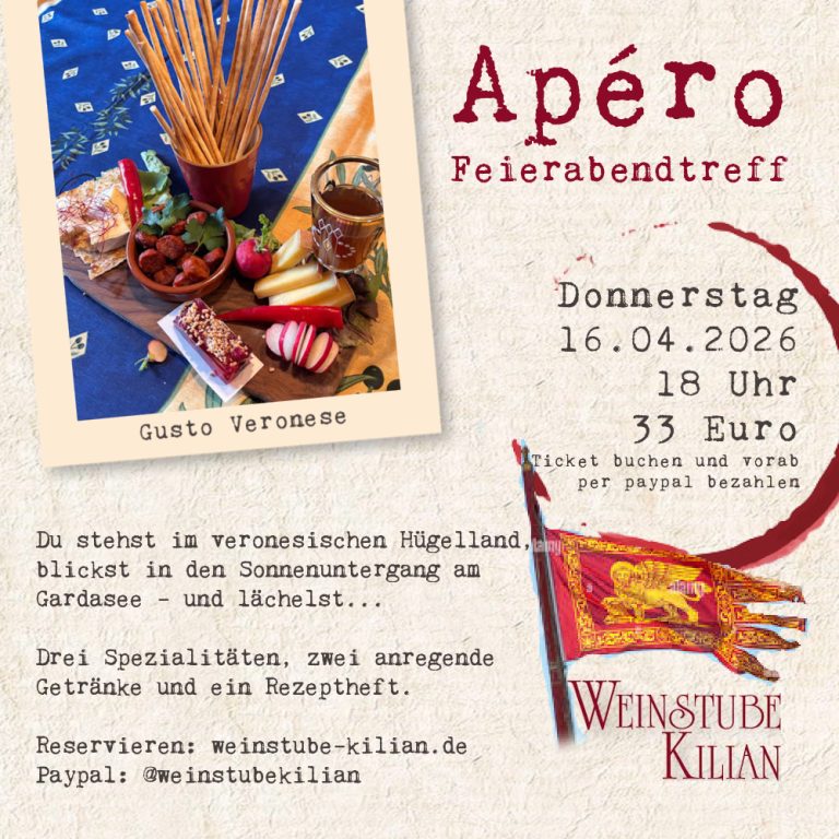 Das Ticket kostet 28,00 Euro. Zur Anmeldung klick hier: order@weinstube-kilian.de